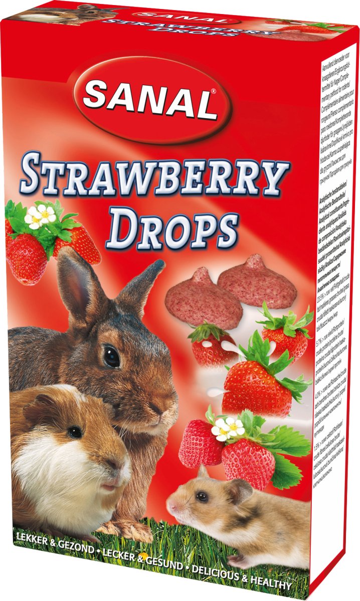 Sanal Strawberry Drops is een lekkere traktatie voor je knaagdier. Konijnen, hamsters en cavia’s zijn dol op aardbeien.