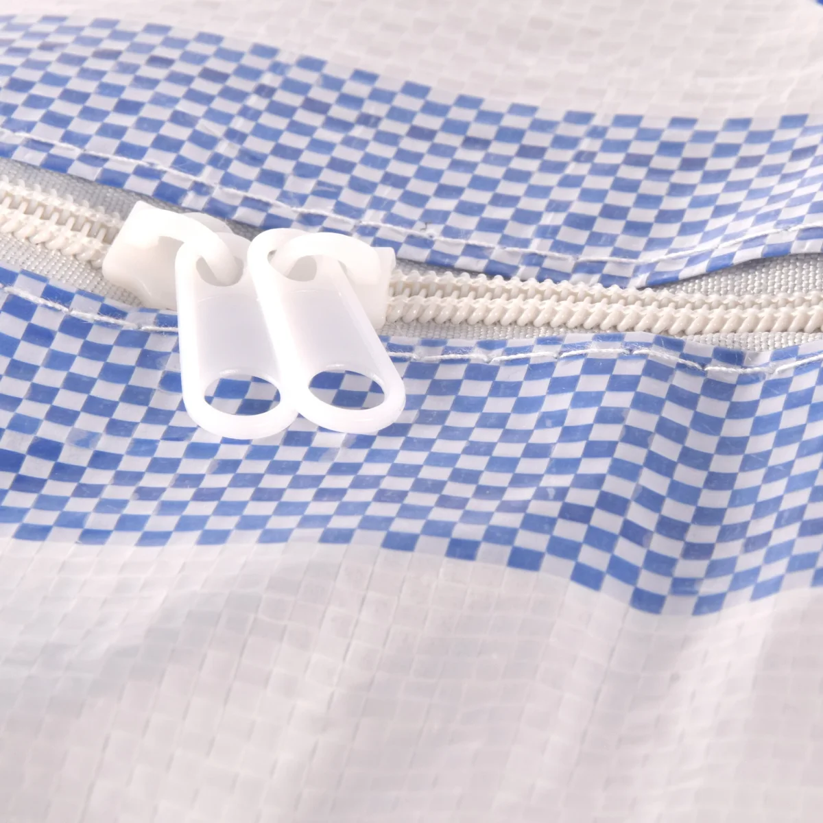 Op zoek naar een praktische en stijlvolle boodschappentas en opbergtas? Dan is onze blauw-witte tas precies wat je nodig hebt! Deze veelzijdige tas is perfect voor het doen van boodschappen en het opbergen van kleding. Met zijn handige rits sluiting houdt hij al je spullen veilig en georganiseerd. Gemaakt van duurzaam plastic, is deze tas lichtgewicht en gemakkelijk mee te nemen.