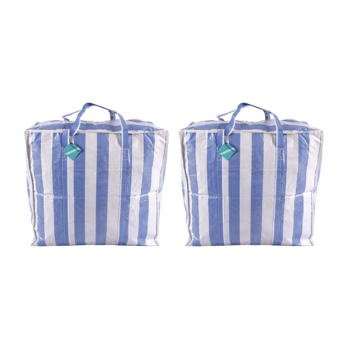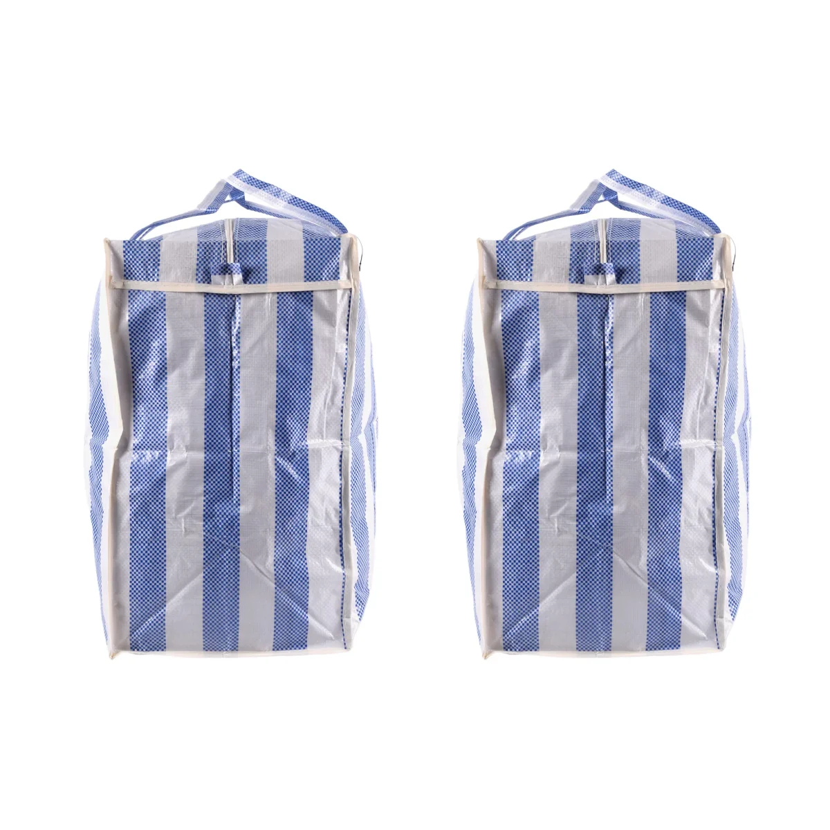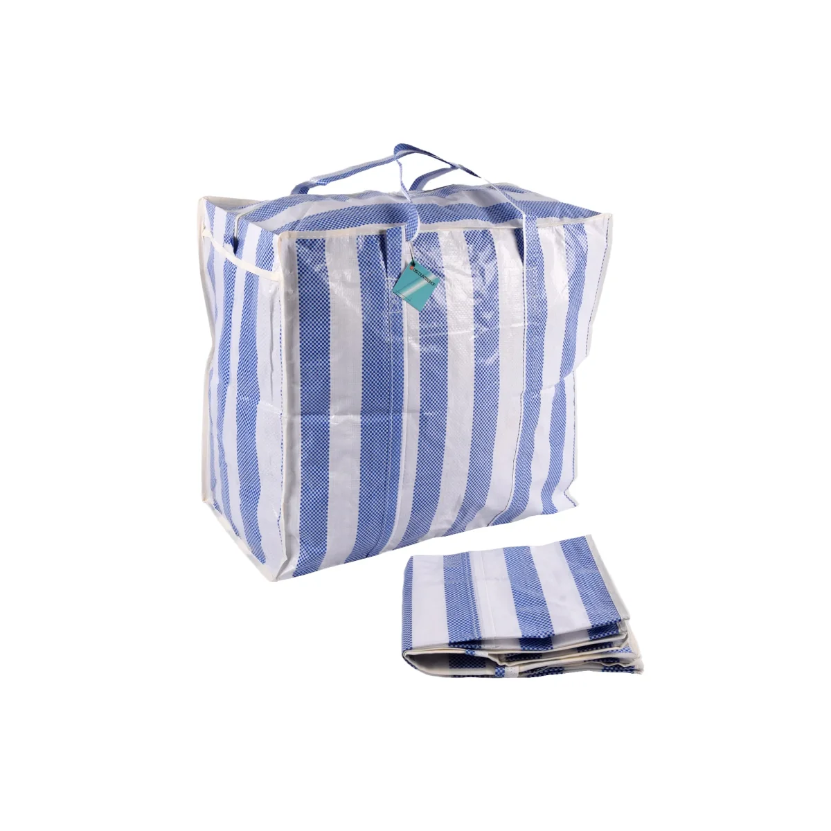 Deze tas is niet alleen geschikt als boodschappentas, maar ook als opbergtas voor kleding. Met zijn ruime formaat kun je gemakkelijk kledingstukken, beddengoed, speelgoed en meer opbergen. De blauw-witte kleur geeft een trendy en moderne uitstraling aan de tas, waardoor hij perfect past in elk interieur.