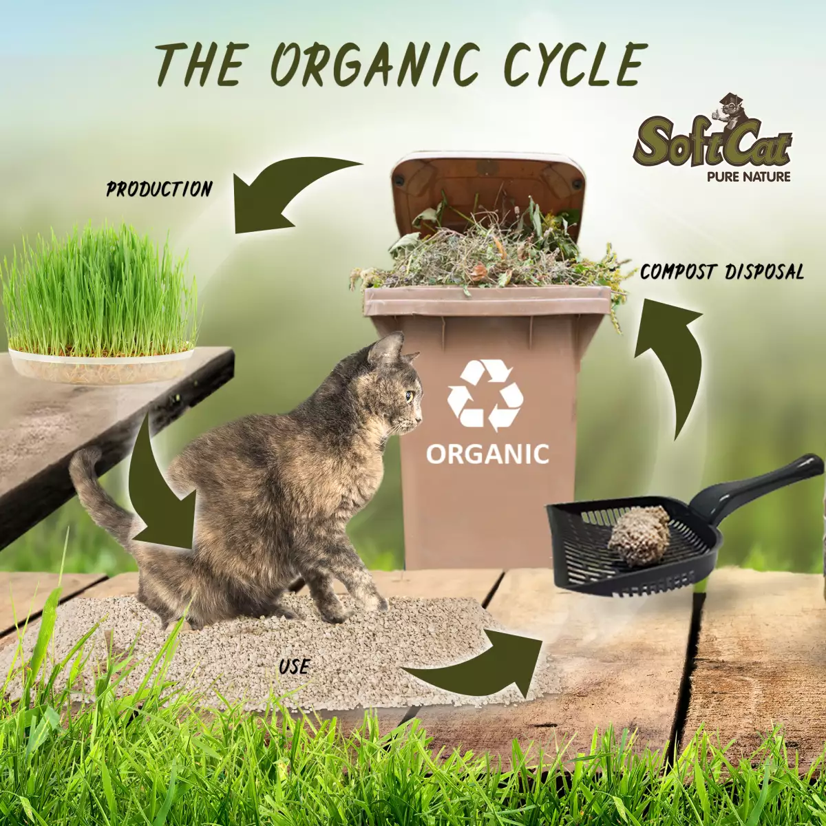 Iedereen kent het probleem: klonten natuurlijke kattenbakvulling op plantenbasis vallen snel uit elkaar en de losse onderdelen ervan vervuilen het toilet. Niet met SoftCat! Dankzij de perfecte combinatie van hernieuwbaar gras is Soft Cat uitgevonden: een natuurlijke, milieuvriendelijke kattenbakvulling met speciale klonterende eigenschappen, ultralicht en extreem absorberend. De plantenvezels van het strooisel hebben een bijzonder hoog absorptievermogen van 400% van het totale gewicht en vormen in zeer korte tijd stabiele en stevige klonten. Hierdoor worden onaangename geuren effectief gebonden. De klonten kunnen gemakkelijk worden weggegooid in de composthoop, in de GFT-bak of, afhankelijk van de regelgeving, door het toilet worden gespoeld.