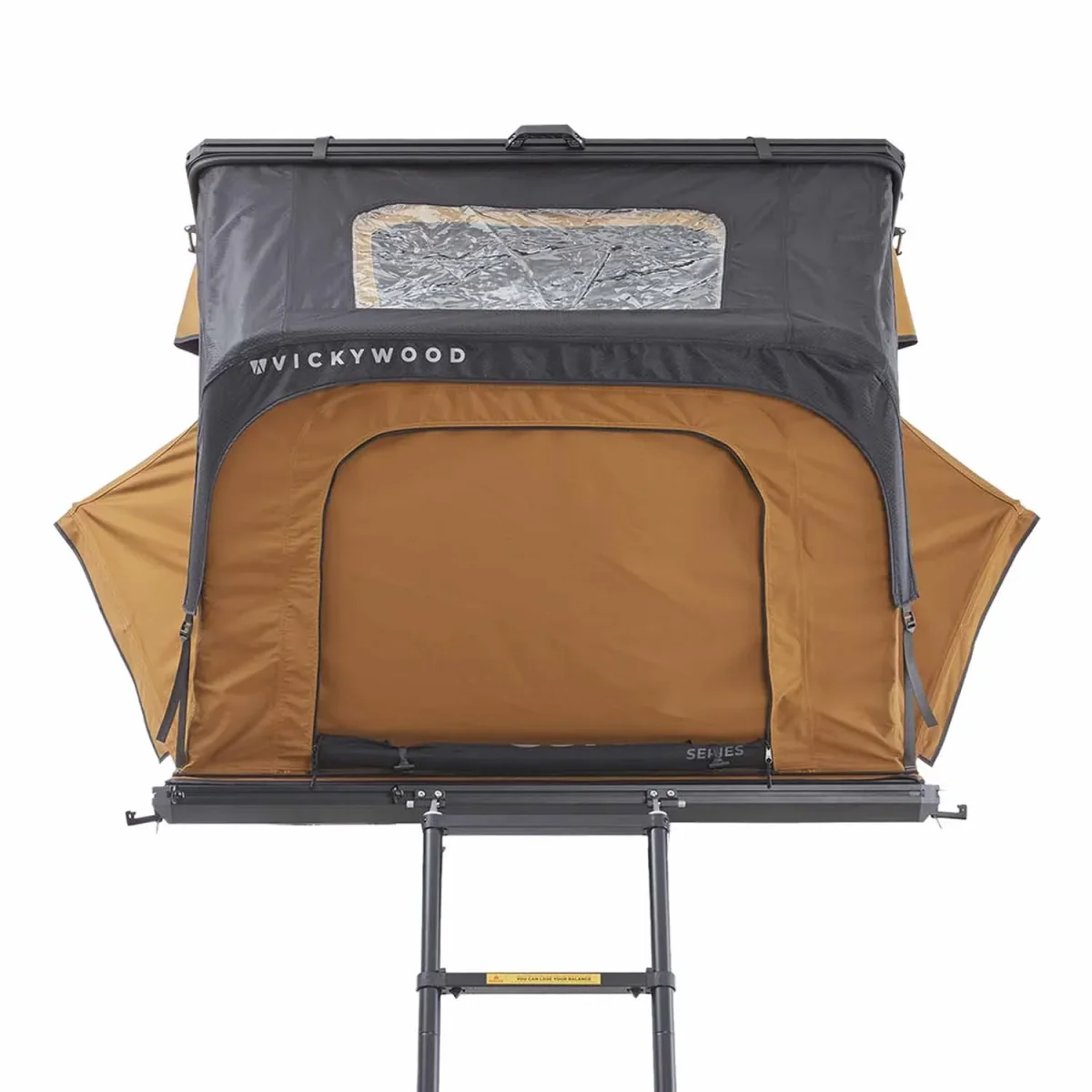 La tente de toit rigide Vickywood CUMARU UP 145 est l’équipement de bivouac haute performance par excellence, offrant une hauteur intérieure de 150 cm et une étanchéité de 5 000 mm pour tous vos road trips.