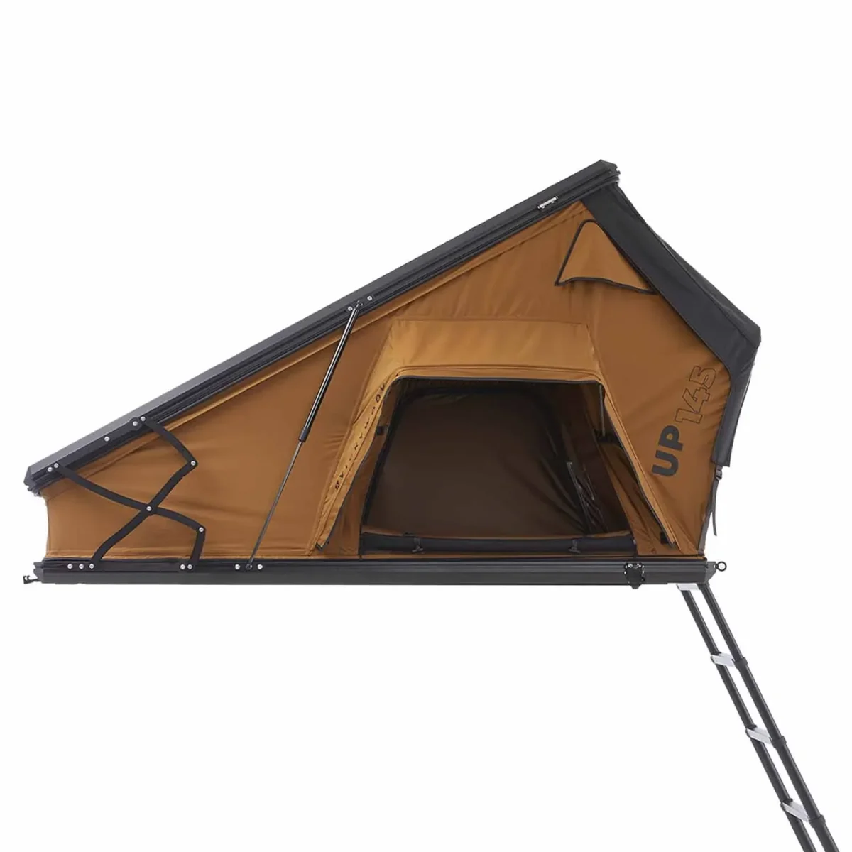 Dominez vos horizons avec la CUMARU UP 145, une tente de toit à coque rigide en aluminium qui allie robustesse extrême, confort haut de gamme et une esthétique “Earthy Yellow” unique pour vos expéditions.