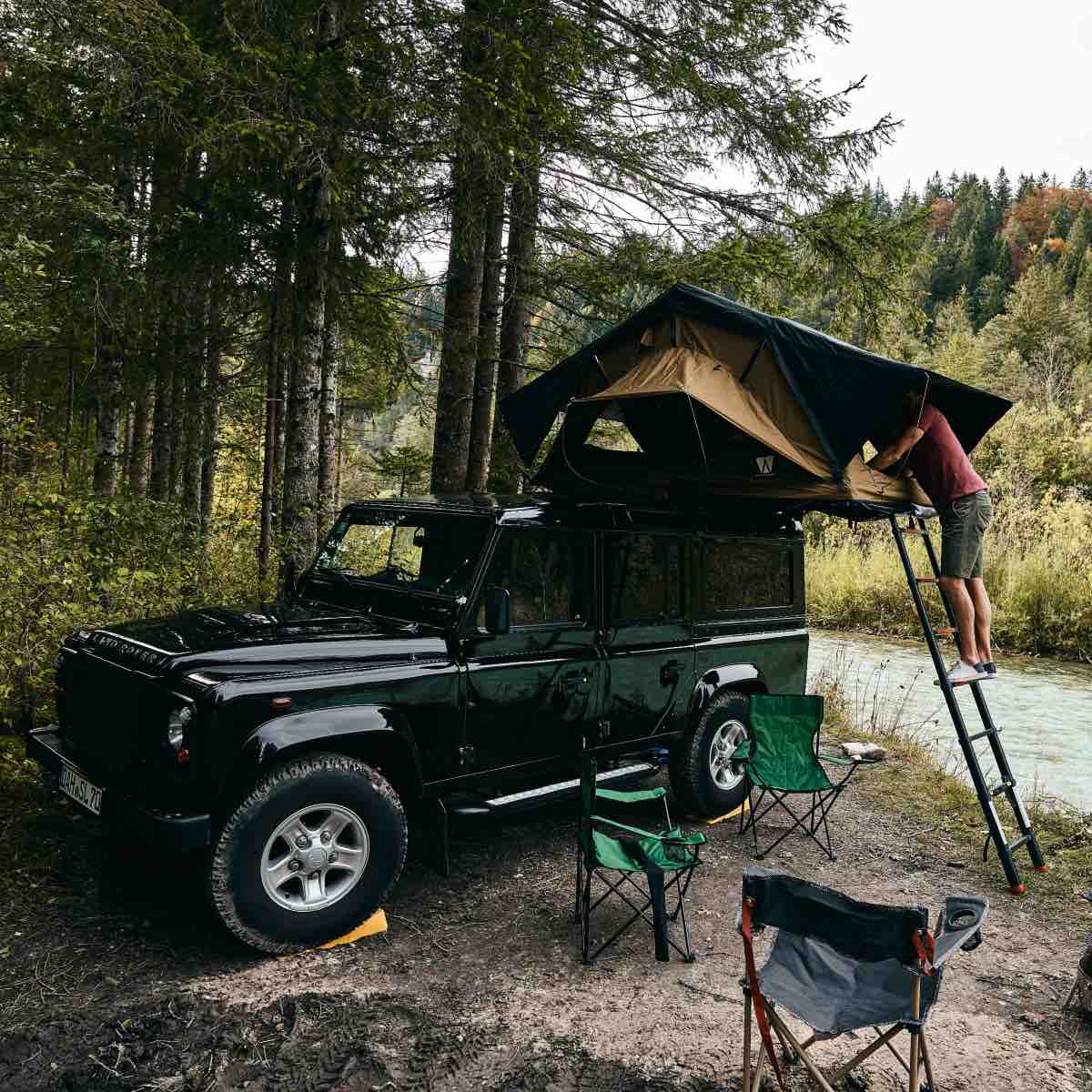 La tente de toit à coque souple Small Willow 140 de la marque allemande Vickywood est une tente de toit combinant praticité, compacité et qualité.