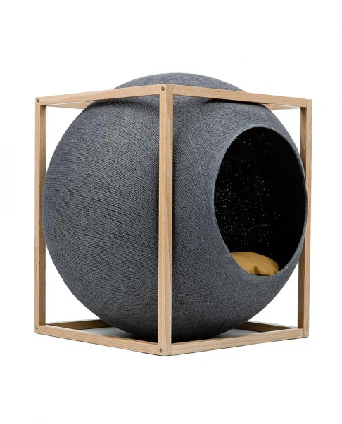 The Cube is een zacht geweven katoenen bol die elegant ingebouwd is door een kubus van hout of metaal. Dit prachtige kattenhuis is de perfecte plek waar je Furry Friend zich heerlijk in kan nestelen en zal daarnaast ook prachtig staan in jullie woning. Daarnaast is de bol een geweldige krabbol, waar je kat heerlijk aan kan krabben.