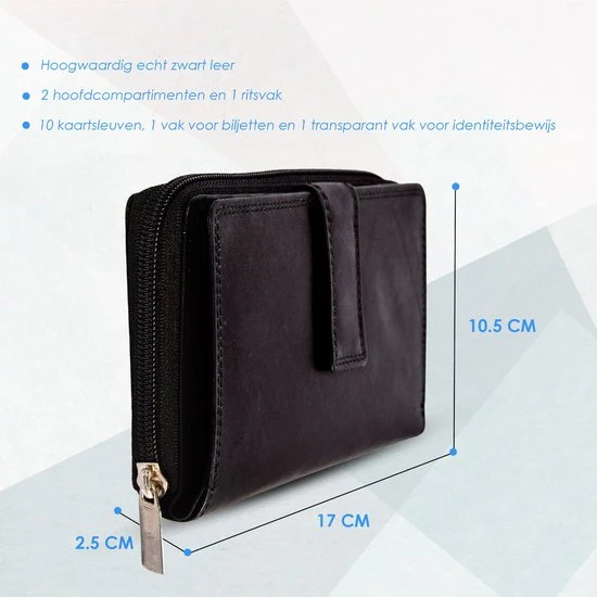 Portemonnee, geldbeurs, portefeuille – hoe je het ook noemt, deze zwarte leren portemonnee met rits is een must-have accessoire voor elke stijlvolle en georganiseerde persoon. Met zijn compacte formaat en klassieke zwarte kleur is het de perfecte metgezel voor dagelijks gebruik.