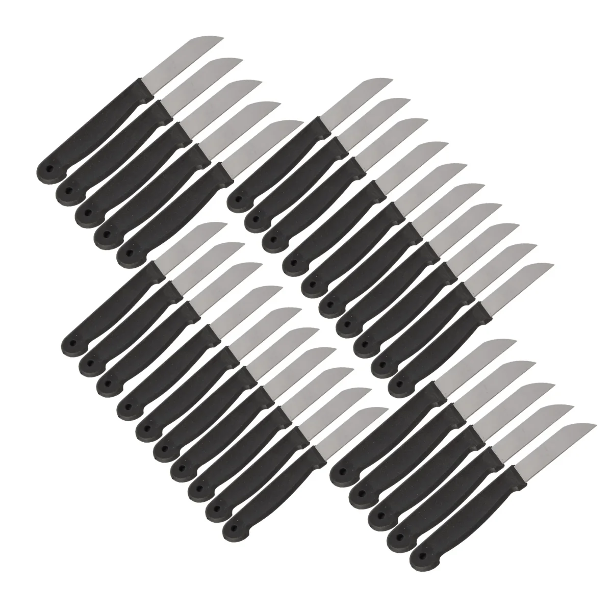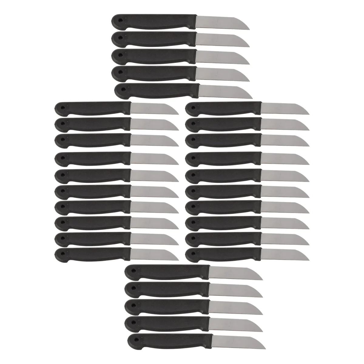Met deze hoogwaardige schilmesjes wordt het schillen van groenten en fruit een fluitje van een cent. Deze set bevat 30 scherpe en duurzame mesjes, ideaal voor professionele koks en kookliefhebbers. De mesjes zijn gemaakt van roestvrij staal en hebben een zwart plastic handvat voor een comfortabele grip.